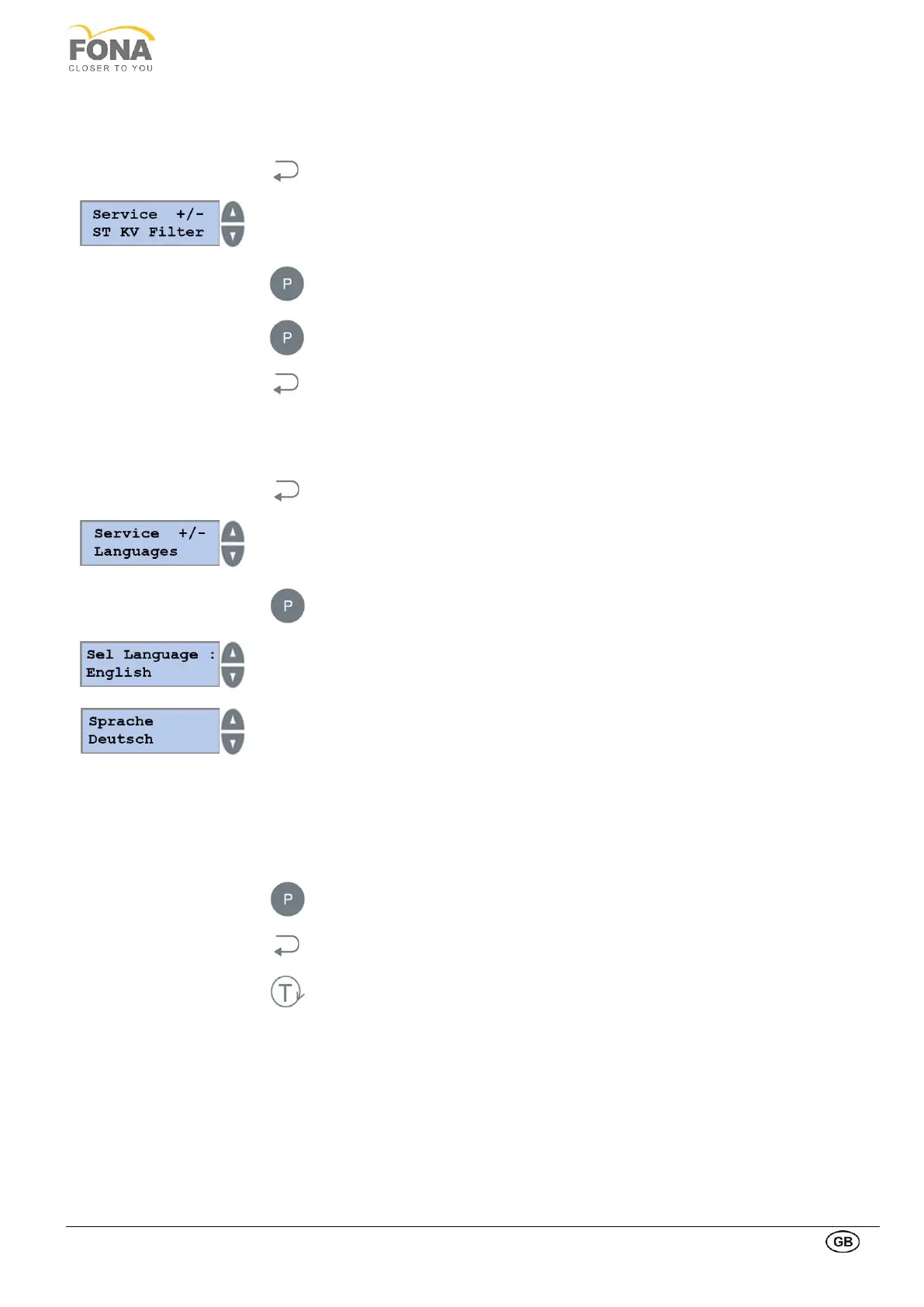 Service function can be selected using the INCREASE or DECREASE keys on the