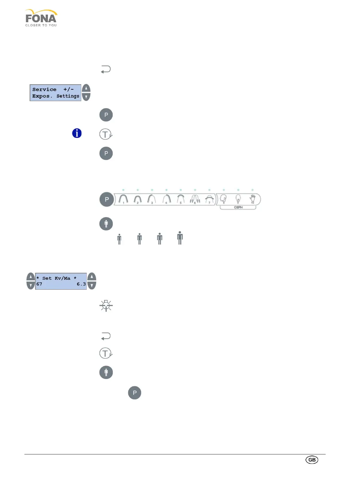Change the kV level to the desired value by pressing the INCREASE or