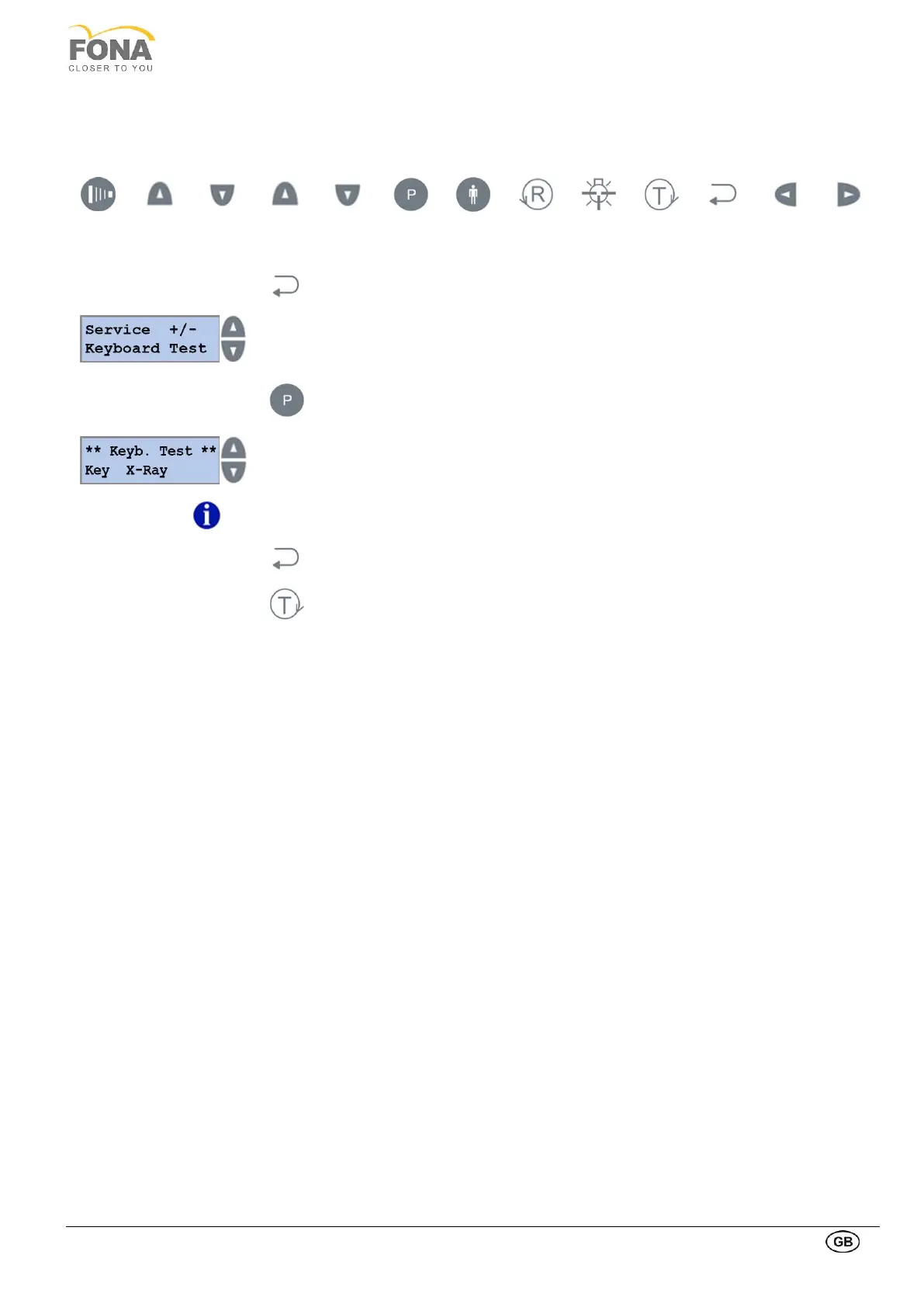 This function is intended to display the code of the key buttons of the control panel and of the Hand-Switch for X-ray