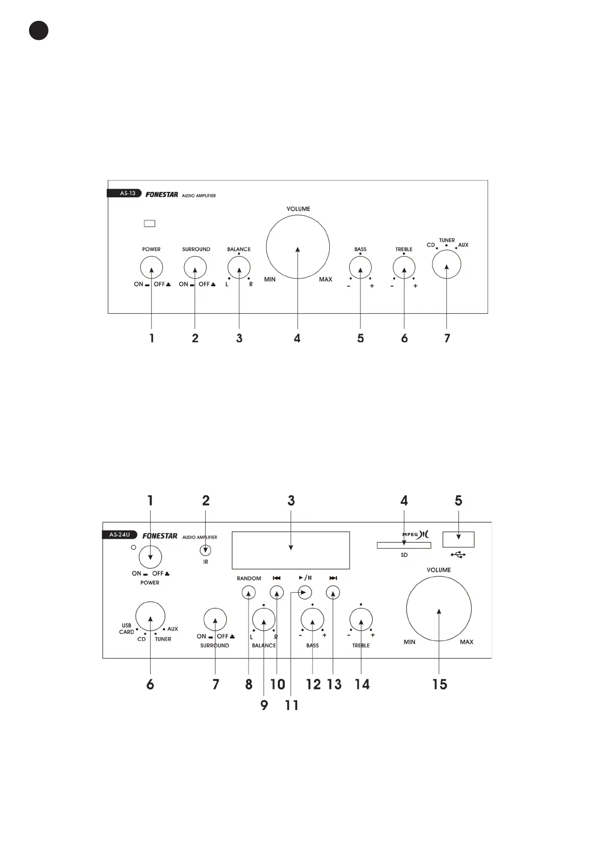 S-24U: compact Hi-Fi stereo amplifier with USB/SD/MP3 player and 3 inputs: CD, tuner and aux.