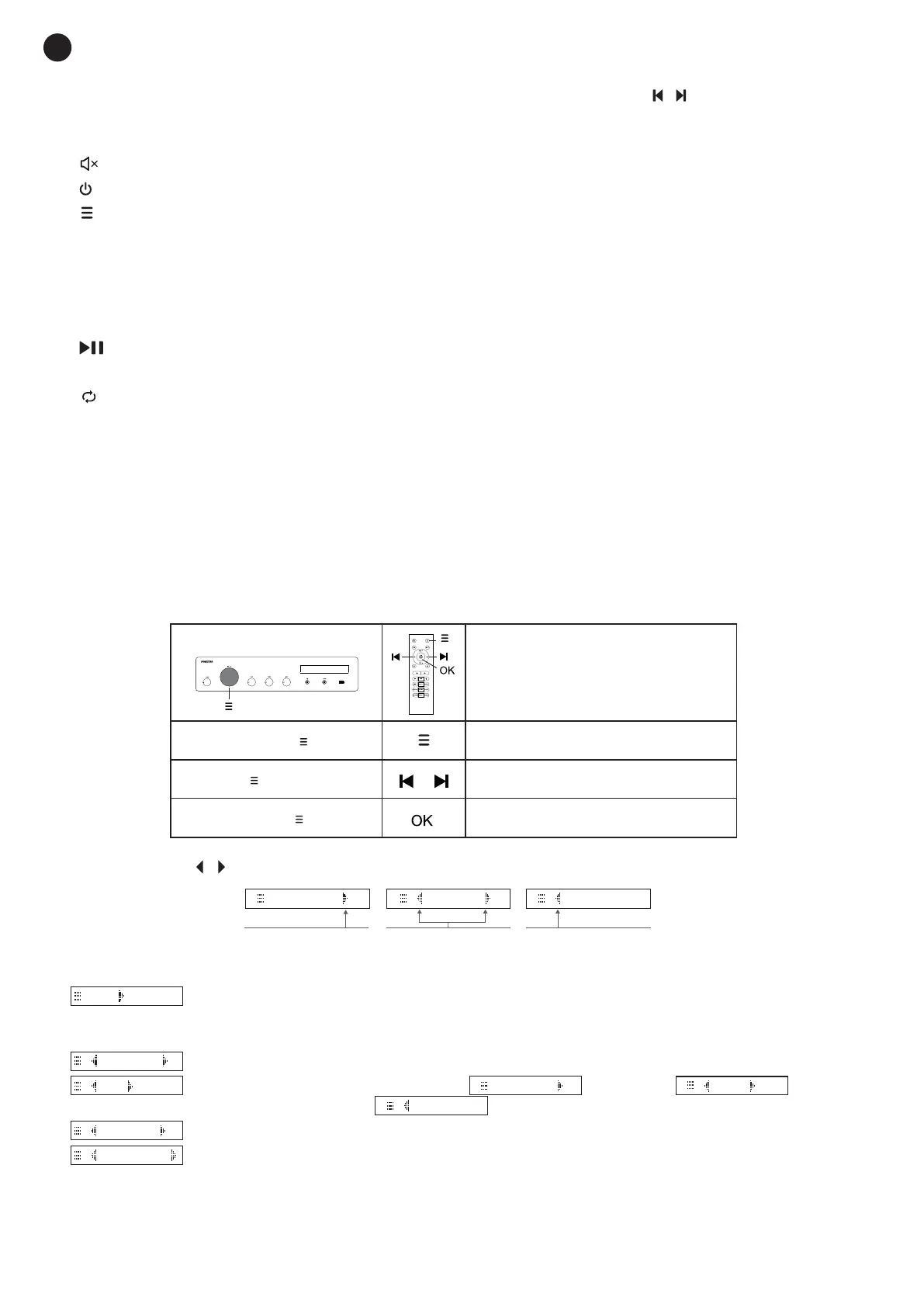 / OK : en mode USB et Bluetooth, permet de démarrer et de mettre en pause la lecture.
