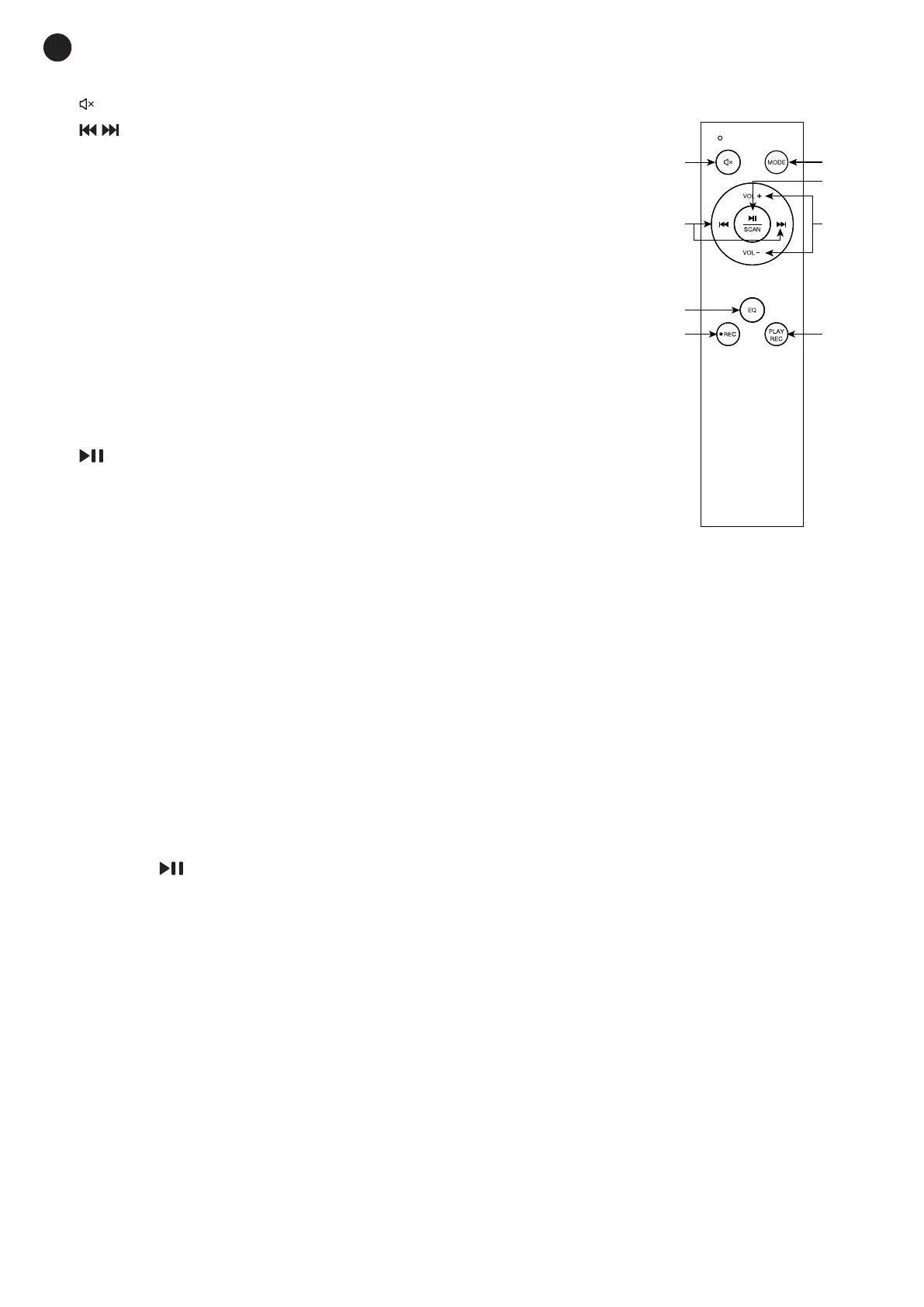 - modos USB/microSD/Bluetooth: reproduz/pausa a reprodução.