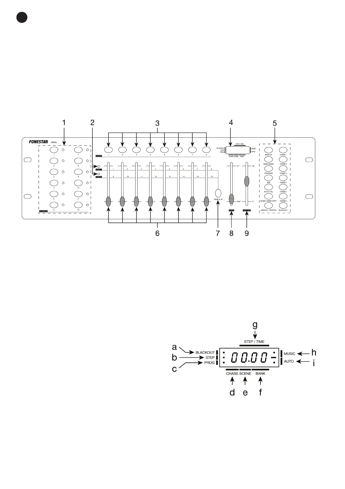 g.- Indicates the digits of the time assigned with FADE TIME and SPEED controls.