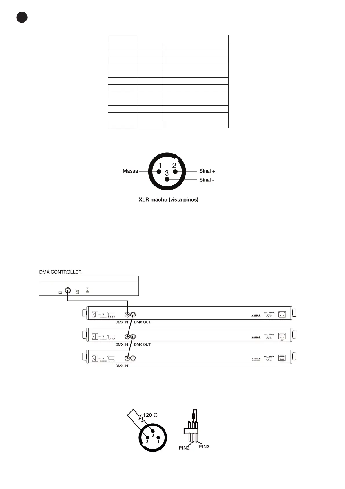 linha – consiste numa resistência de 120 Ω entre os terminais 2 e 3 do conetor XLR DMX OUT do último