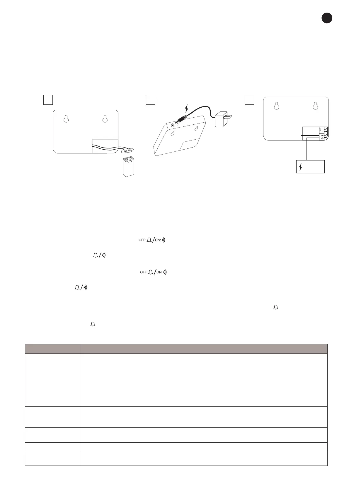 9 V (1), adaptador de corriente 9-12 V CC (2) o una fuente de corriente continua 12 V CC (3).