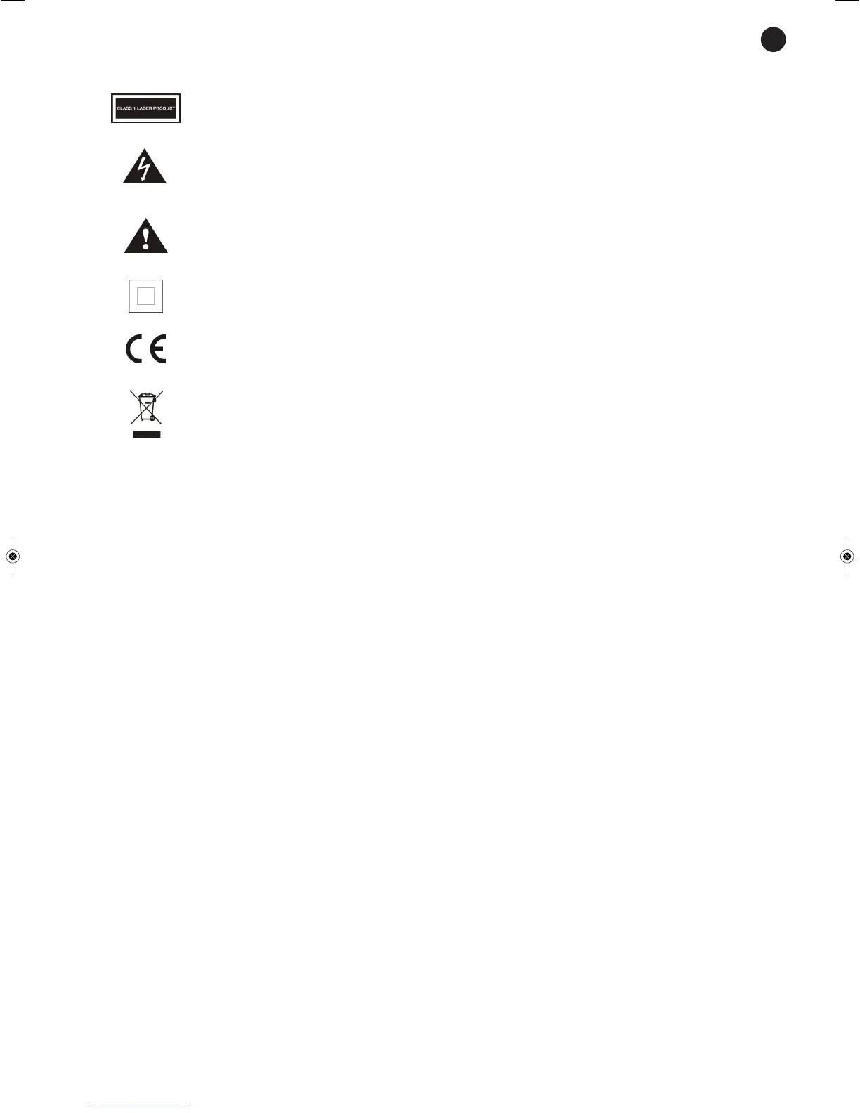 The symbol formed by the expression “Class 1 laser product” written in a rectangle
