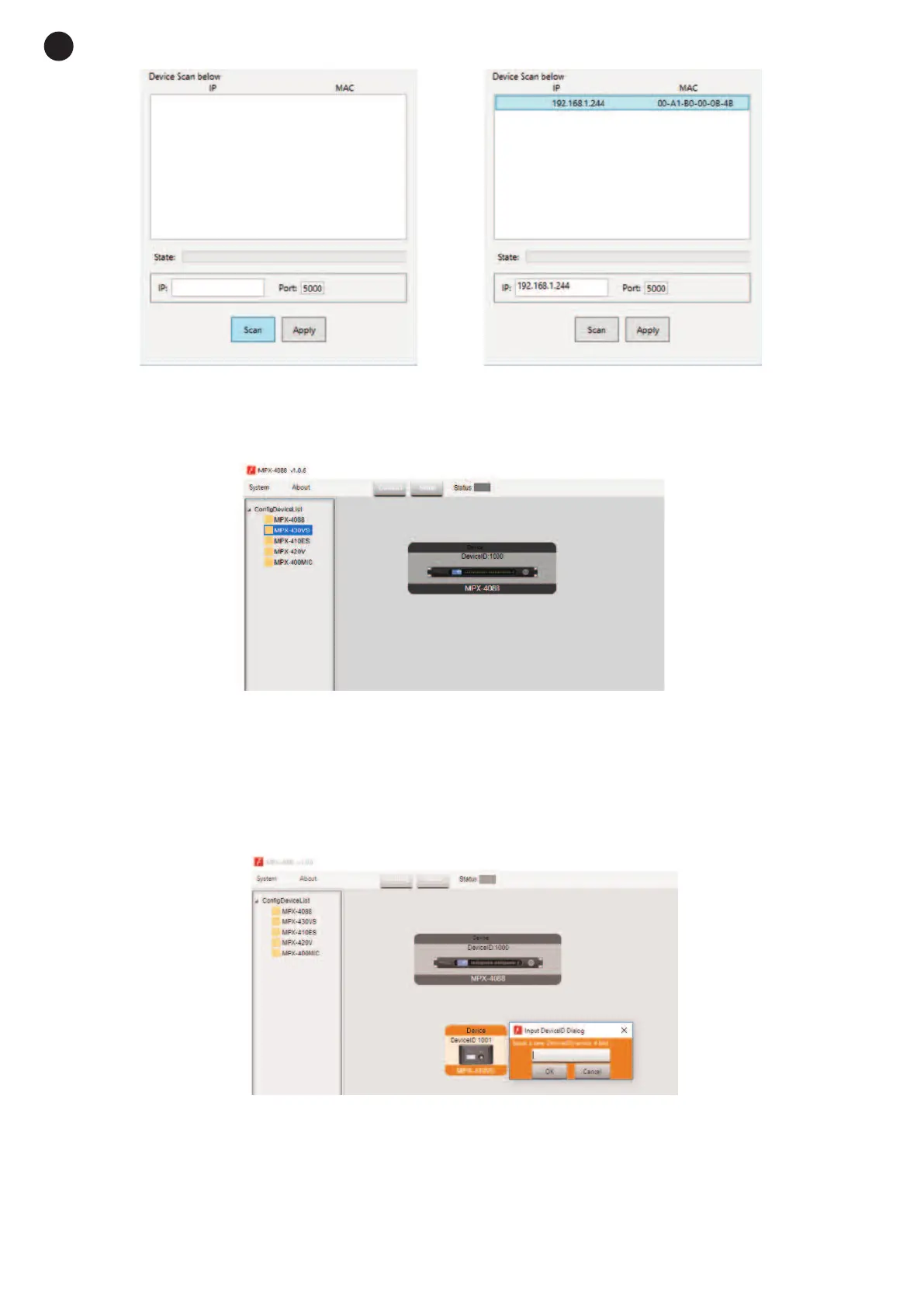 Select the line with the IP and MAC address of the MPX-4088 matrix and click on APPLY. Then, click on