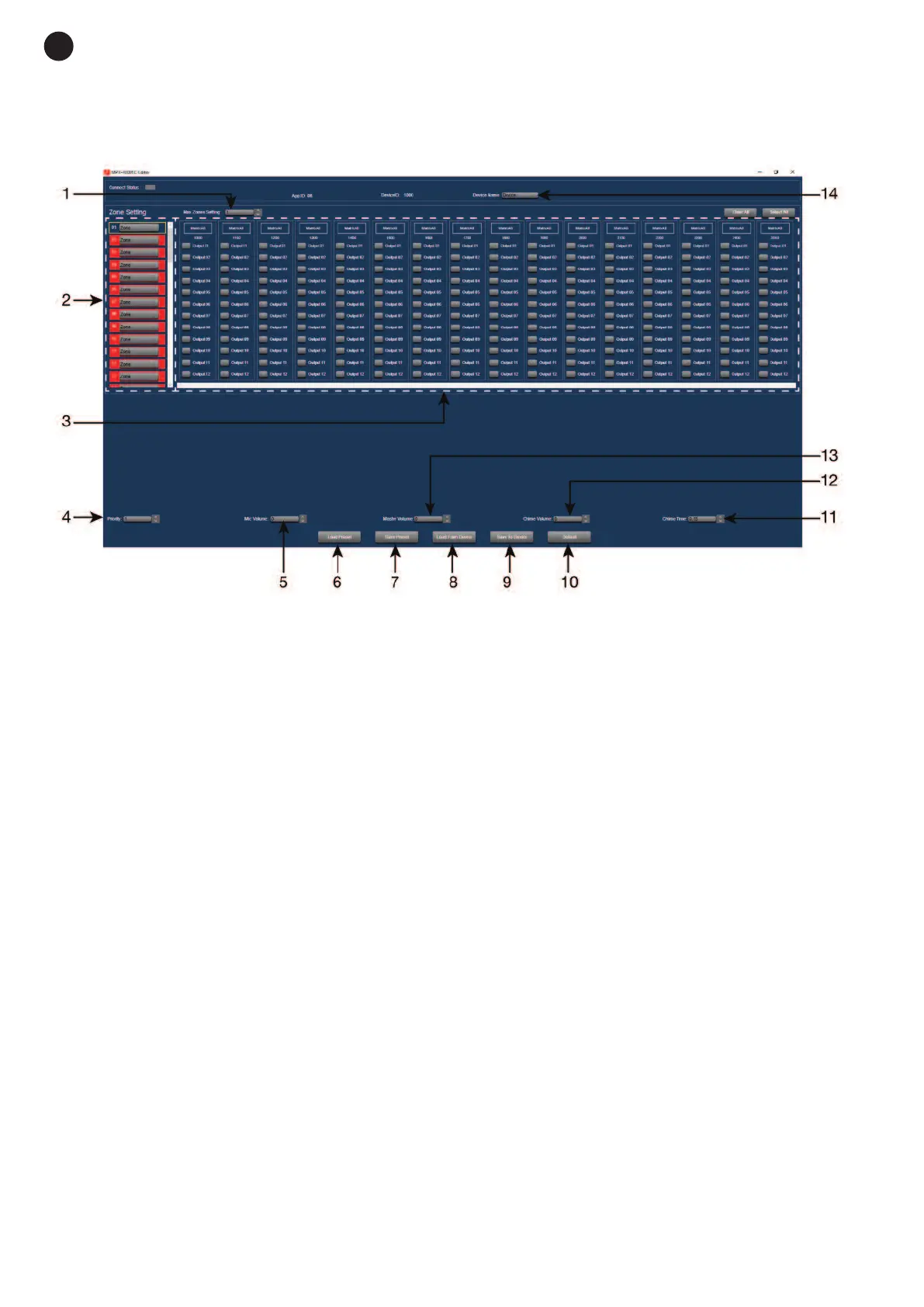 3.- Selection of zone number assigned to the output of each zone.