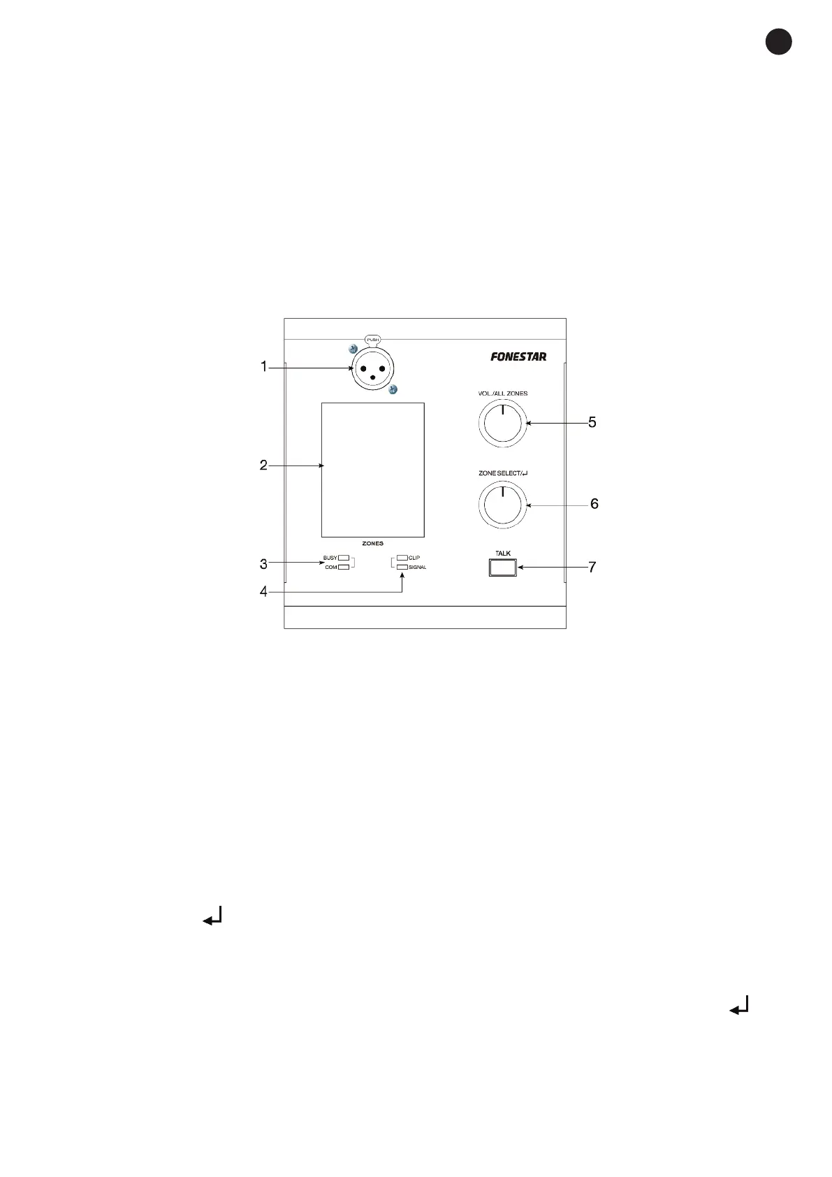 5.- VOL/ALL ZONES: microphone volume control for selected zones. One press of the button, selects all