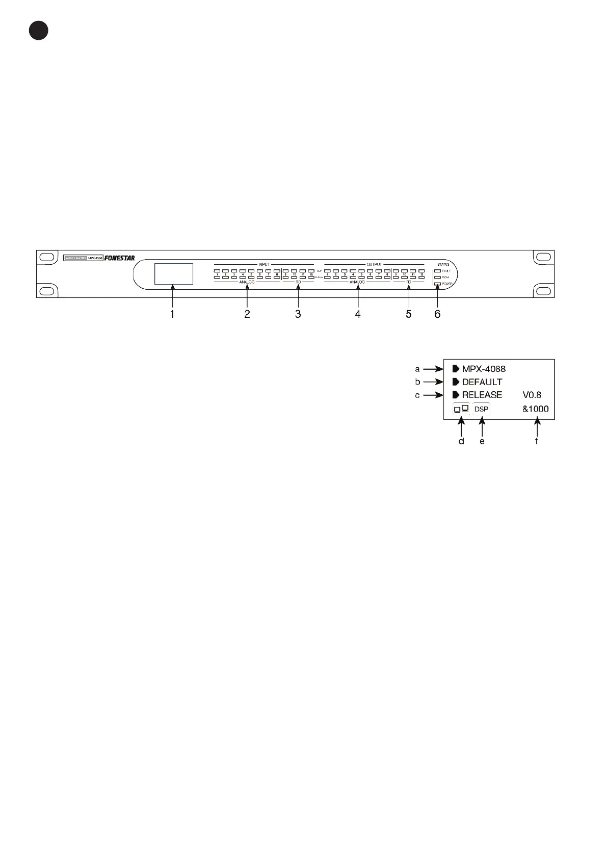 e.- DSP indicator. Should a problem occur “DSP!” will be displayed.