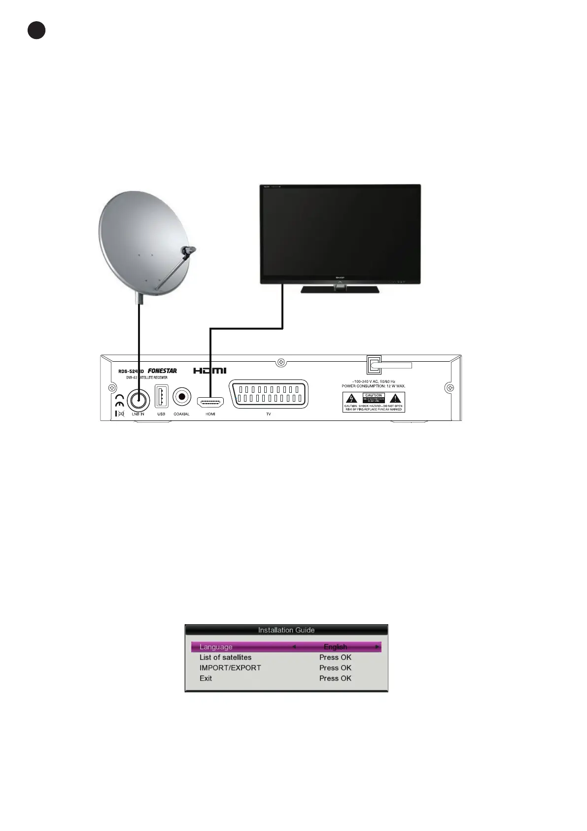 be displayed. Select the menu language (OSD) and perform a channel search (SATELLITE LIST) or load a