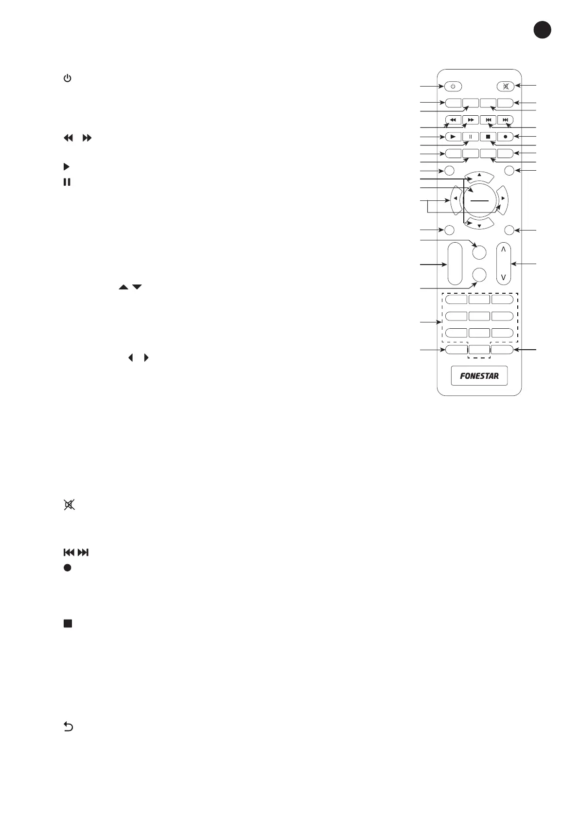 29.- CH+/CH-: these buttons allow you to change the channel. In the channel list allows to go to the