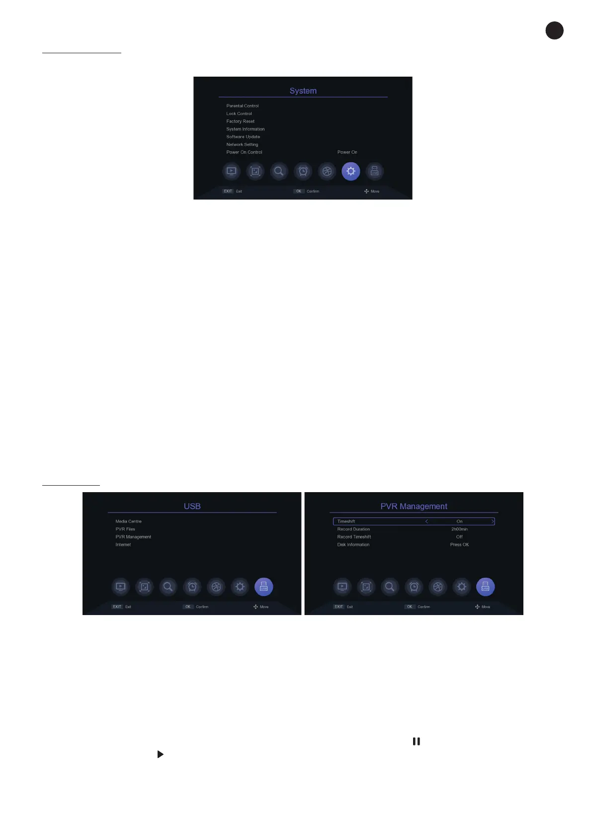 - PVR FILES: allows you to browse the recorded files using PVR included in the connected USB device.