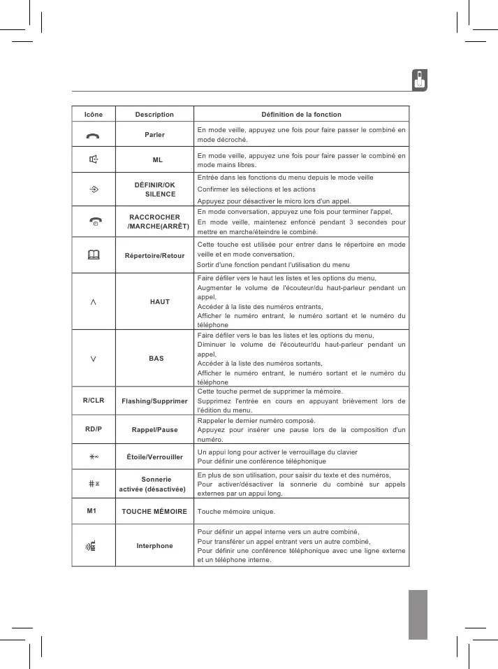 En mode veille, appuyez une fois pour faire passer le combiné en