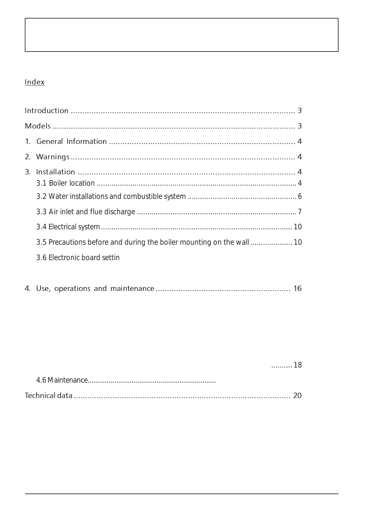 3.5 Precautions before and during the boiler mounting on the wall....................10