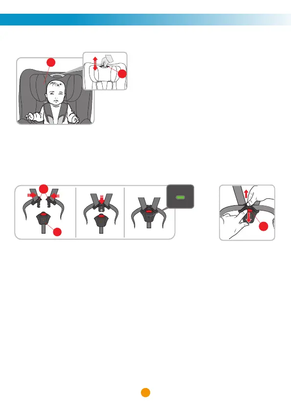shoulder straps 5 until the harness lies at and is close against your child’s body.