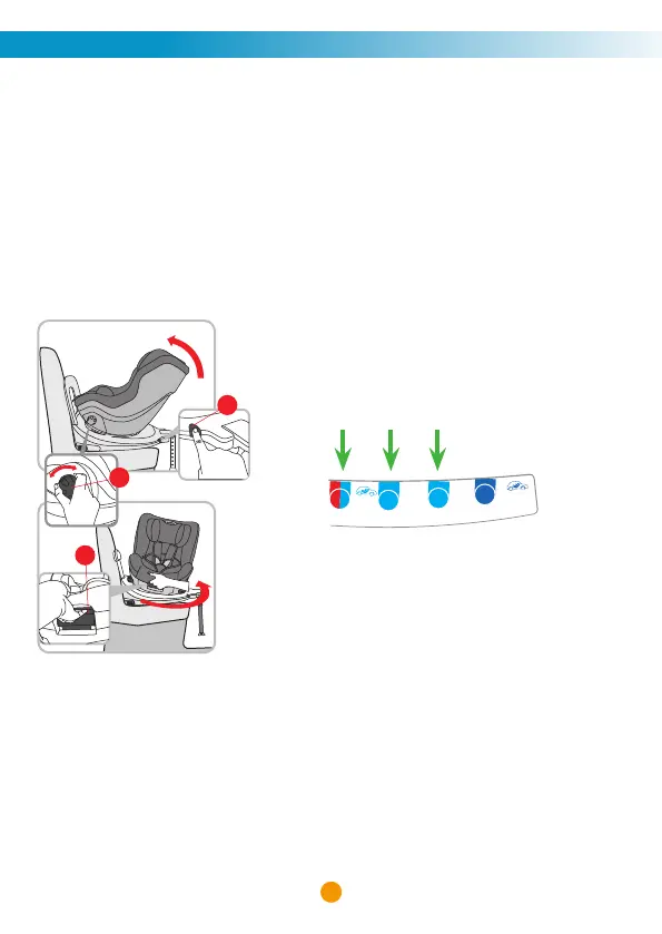 1. Before every journey, make sure that the rotating part of child seat is fully