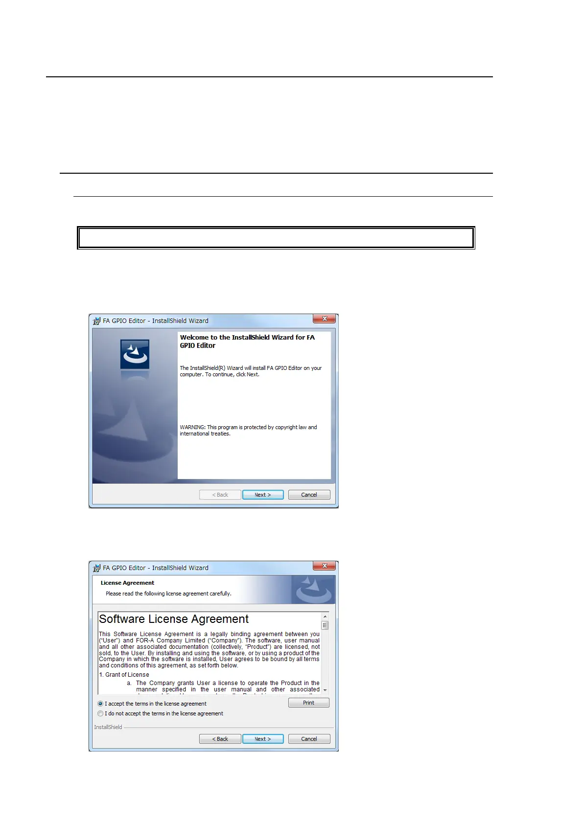 (1) Insert the supplied CD-ROM into the PC. Click “FA GPIO Editor > setup “ on the CD-ROM