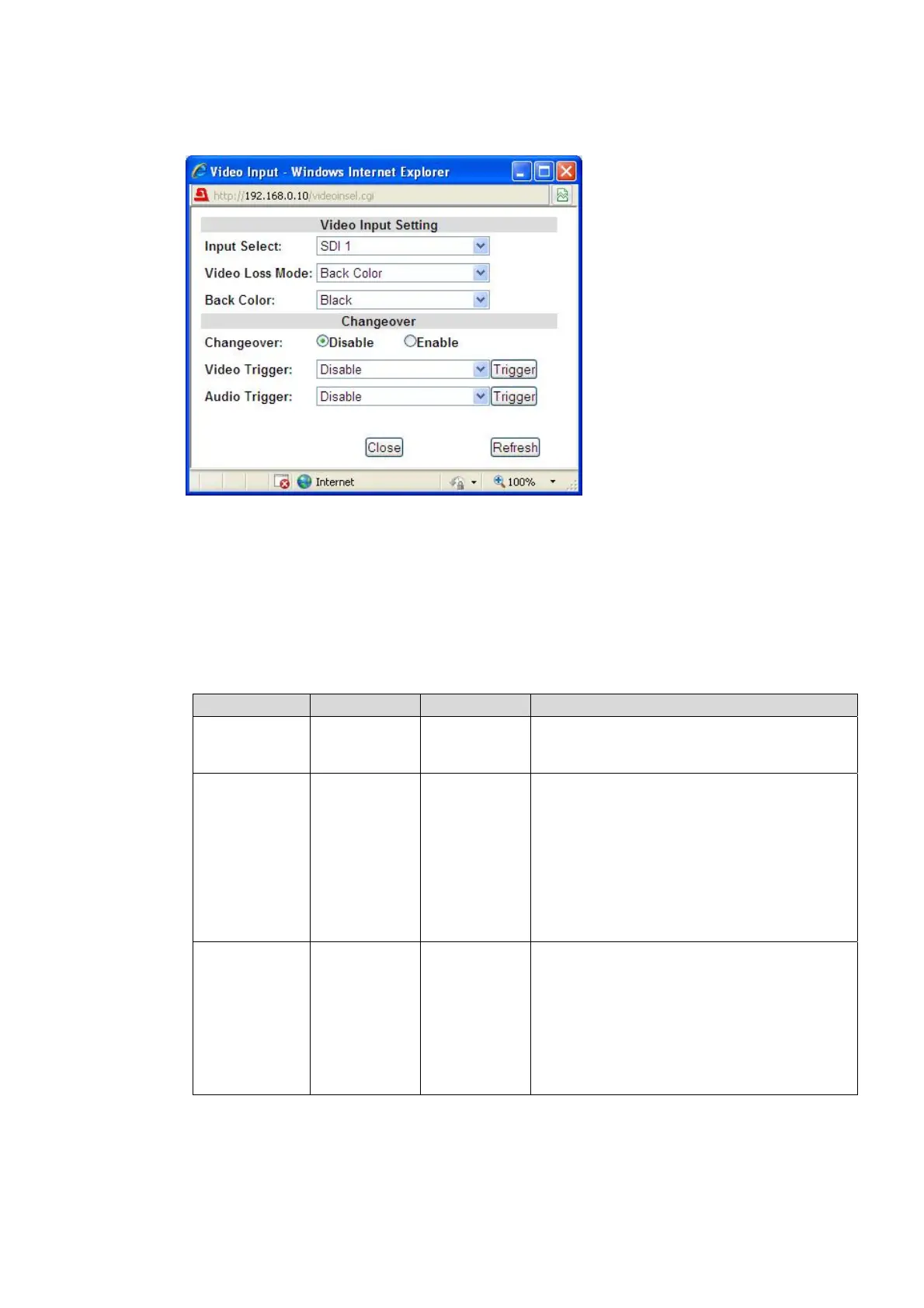 If Changeover is enabled, the Input Select setting cannot be changed.