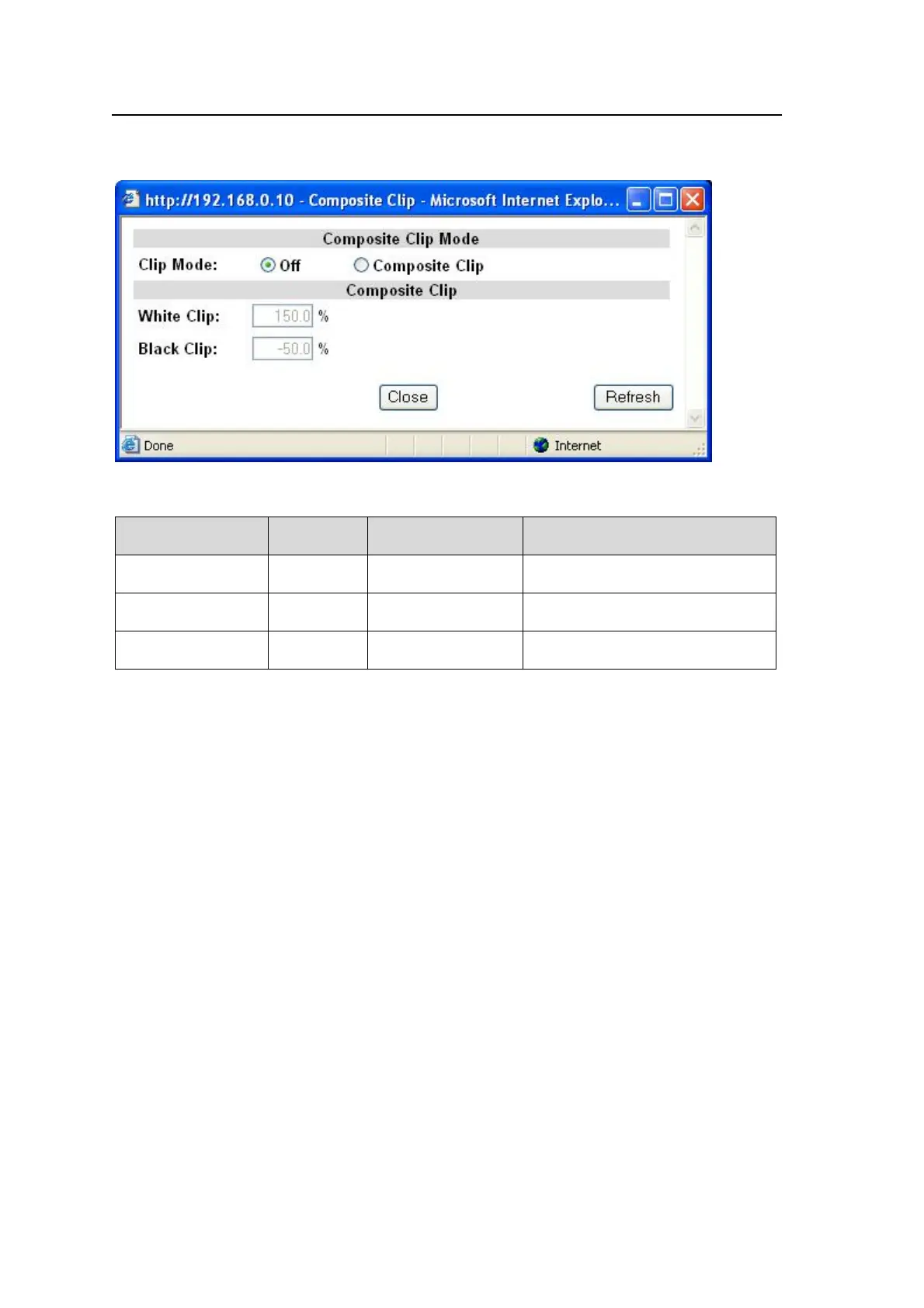 The COMPOSITE CLIP settings are effective only on the analog composite outputs.