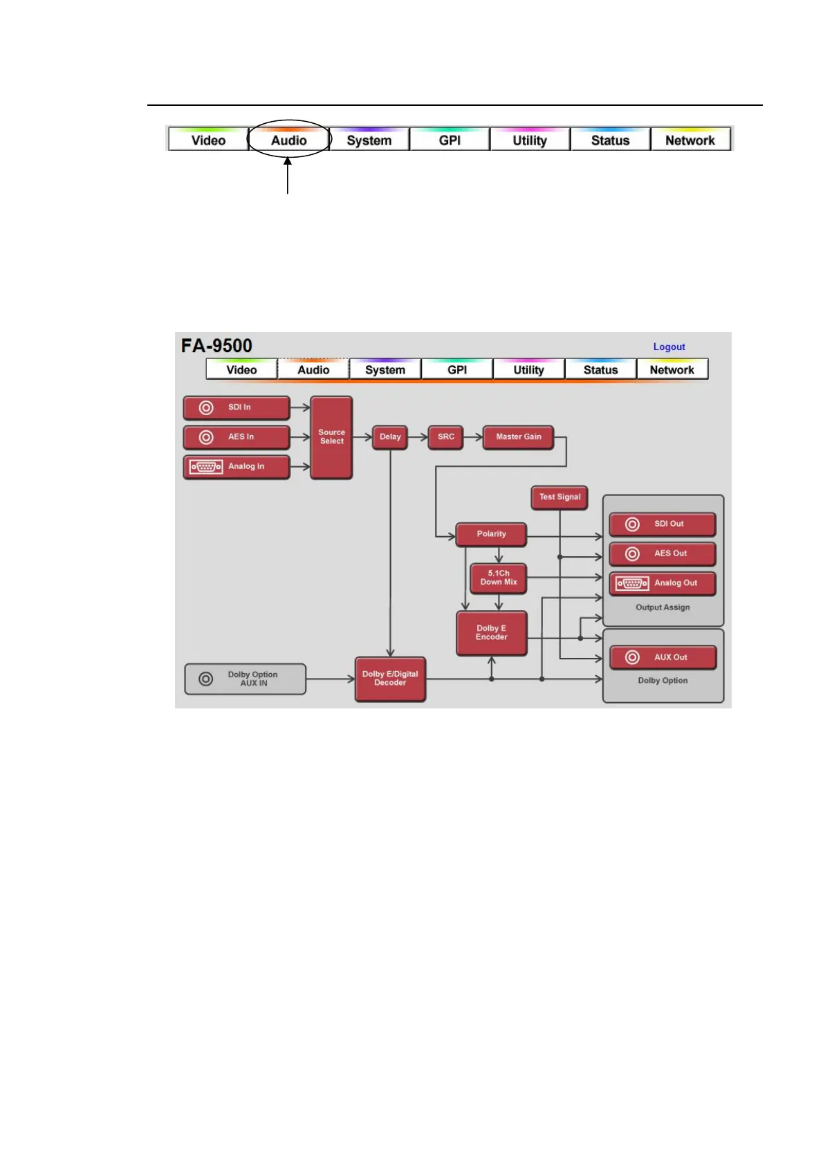 Click the Audio tab at the top of the page. The audio block diagram will be displayed.