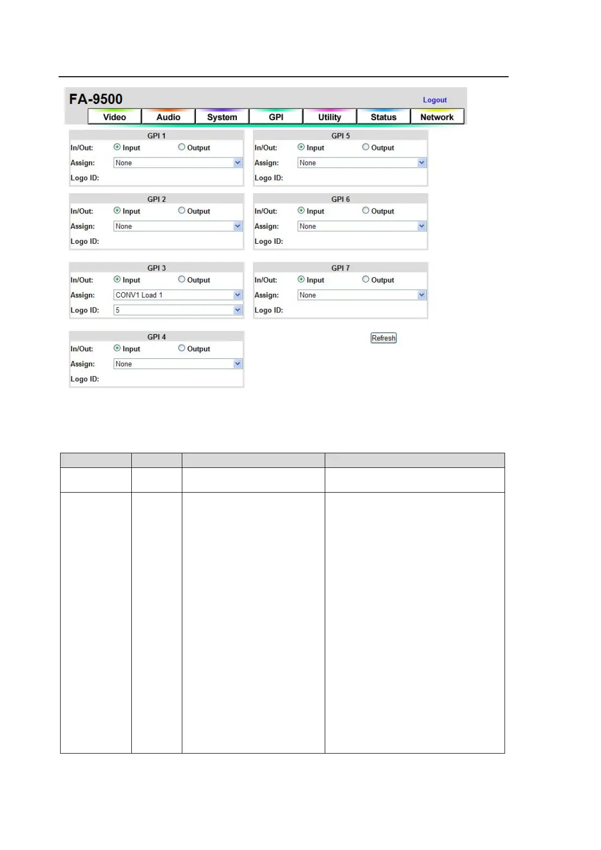 Assigns a function to GPI pins 1