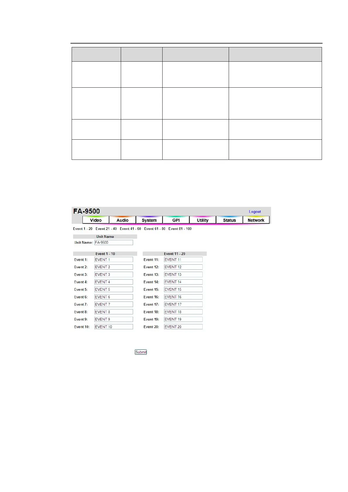 Click Set next to Set Event Name. A window that allows you to name the FA-9500 and events