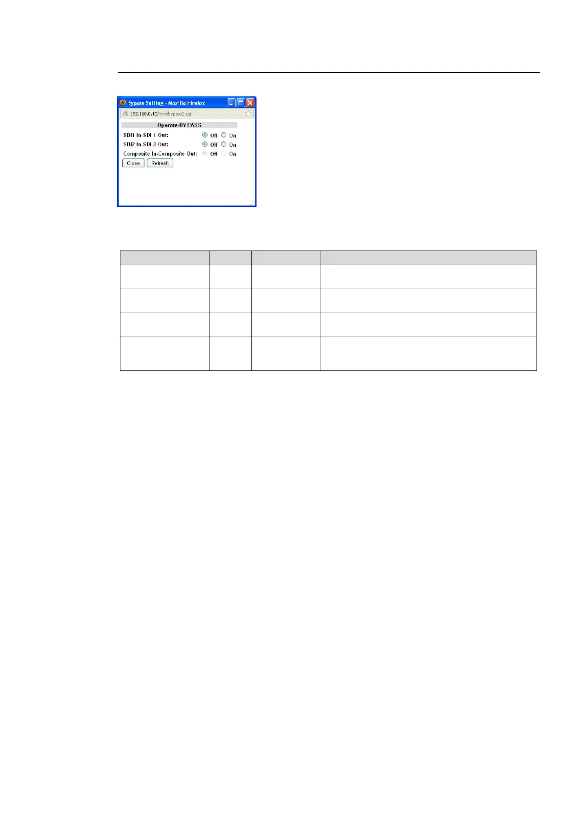 Clicking block (5) on the video block diagram opens the BY-PASS setting dialog box.