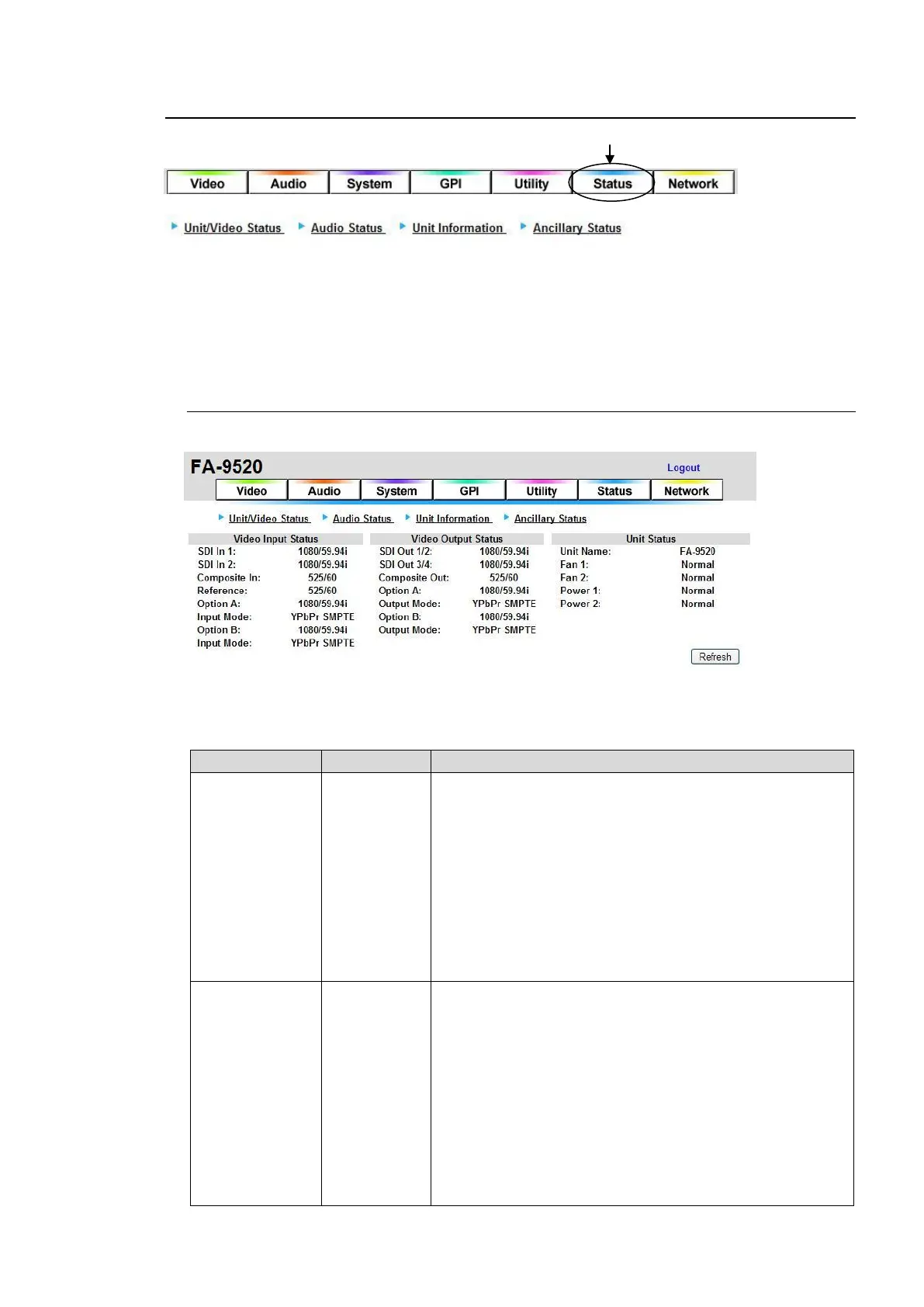 Click the Status tab at the top of the page. The Unit/Video Status page will be displayed. To go to