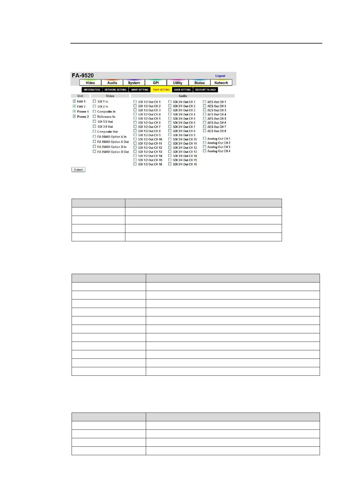 Check to send a trap for FA-95AIO Option A output video.