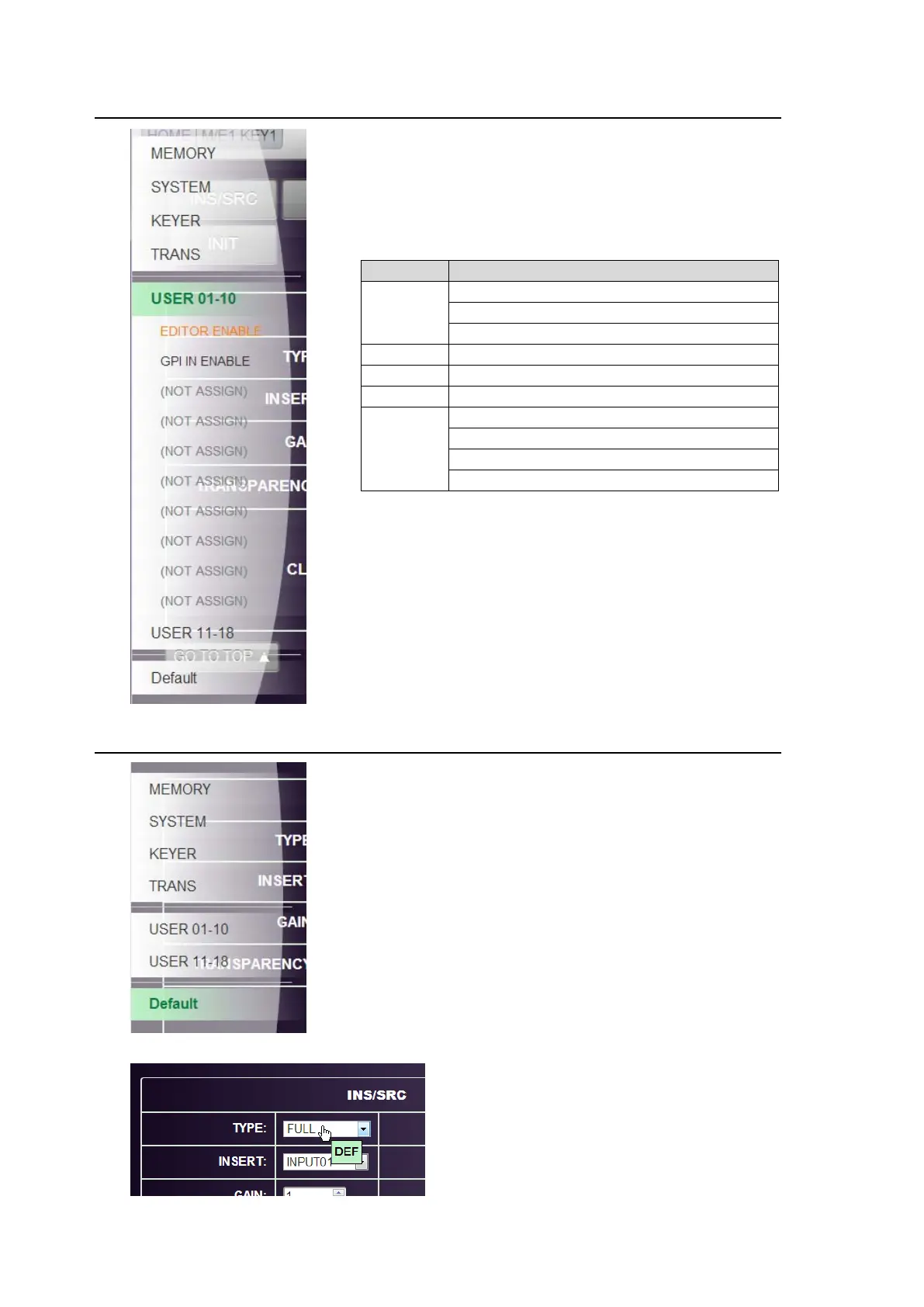 Click on USER01-10 or USER11-18 in the pop-up menu