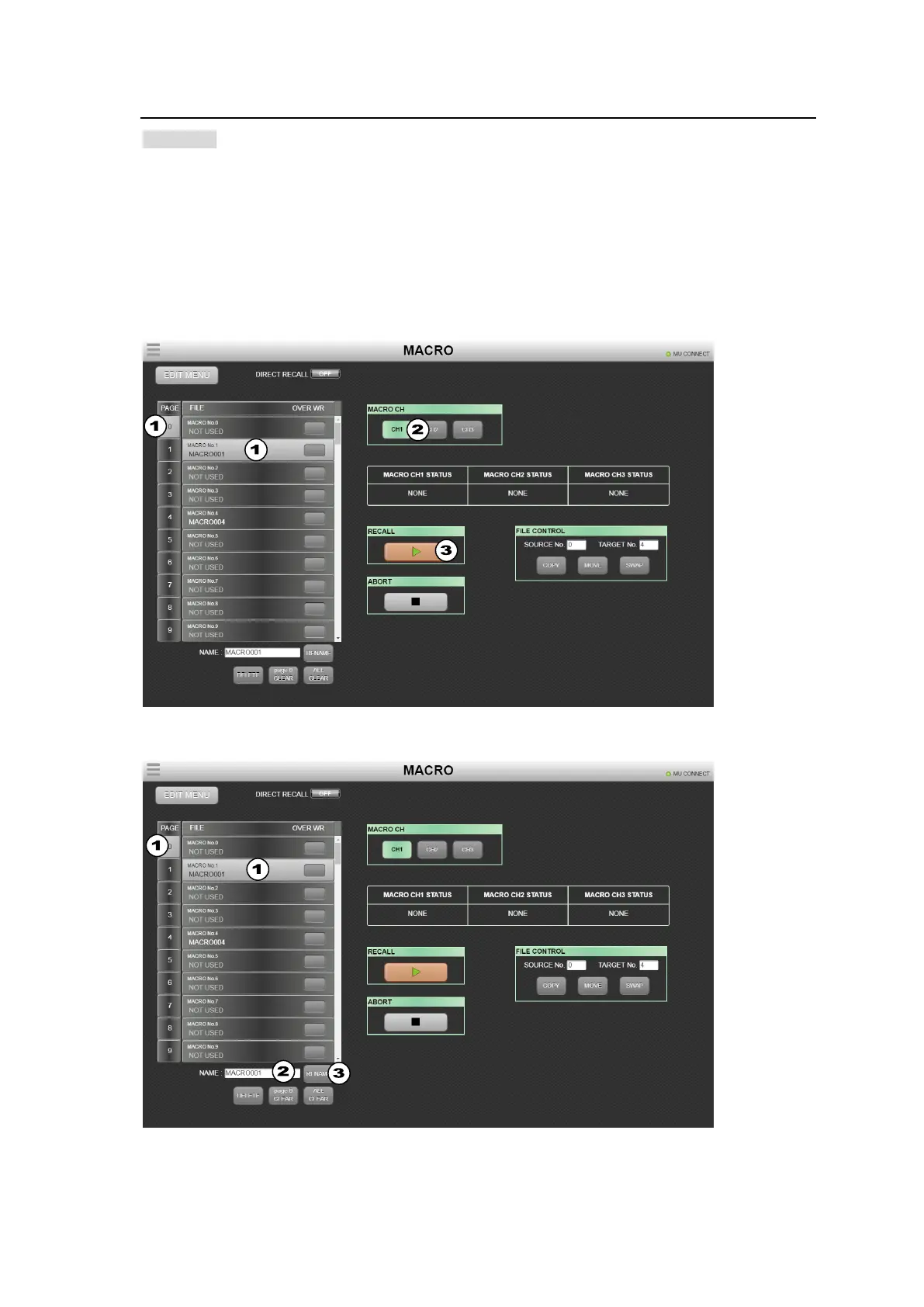 (2) Change the macro channel, as needed. (See Sec 21-3-5.)