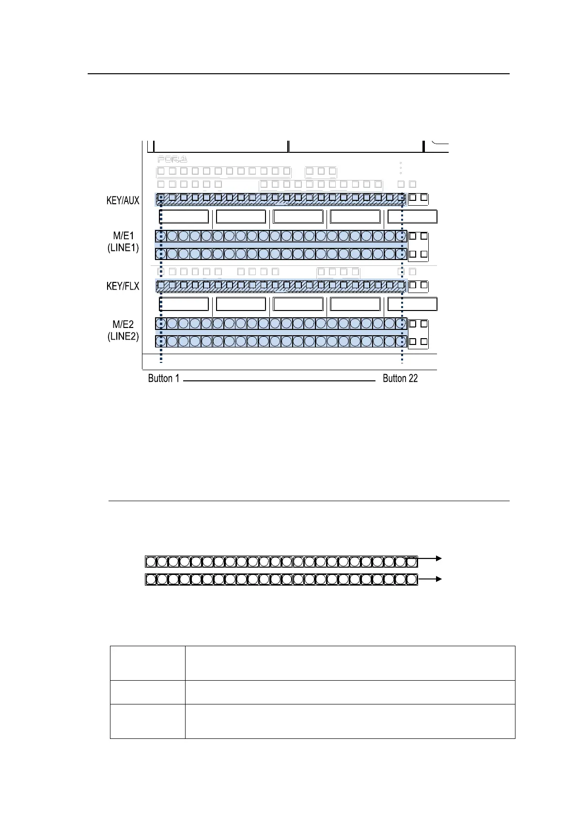 A single bus row comprises 18 bus buttons for HVS-492OU units, 22 for HVS-492WOU and 12 for