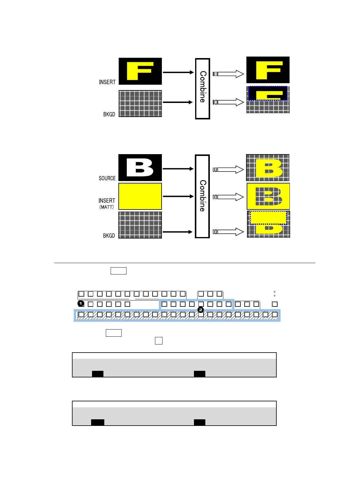 ► See Sec. 11-4. “KEY Transitions” and 11-10.” KEY IN/OUT Using Cut or Fade” for details on