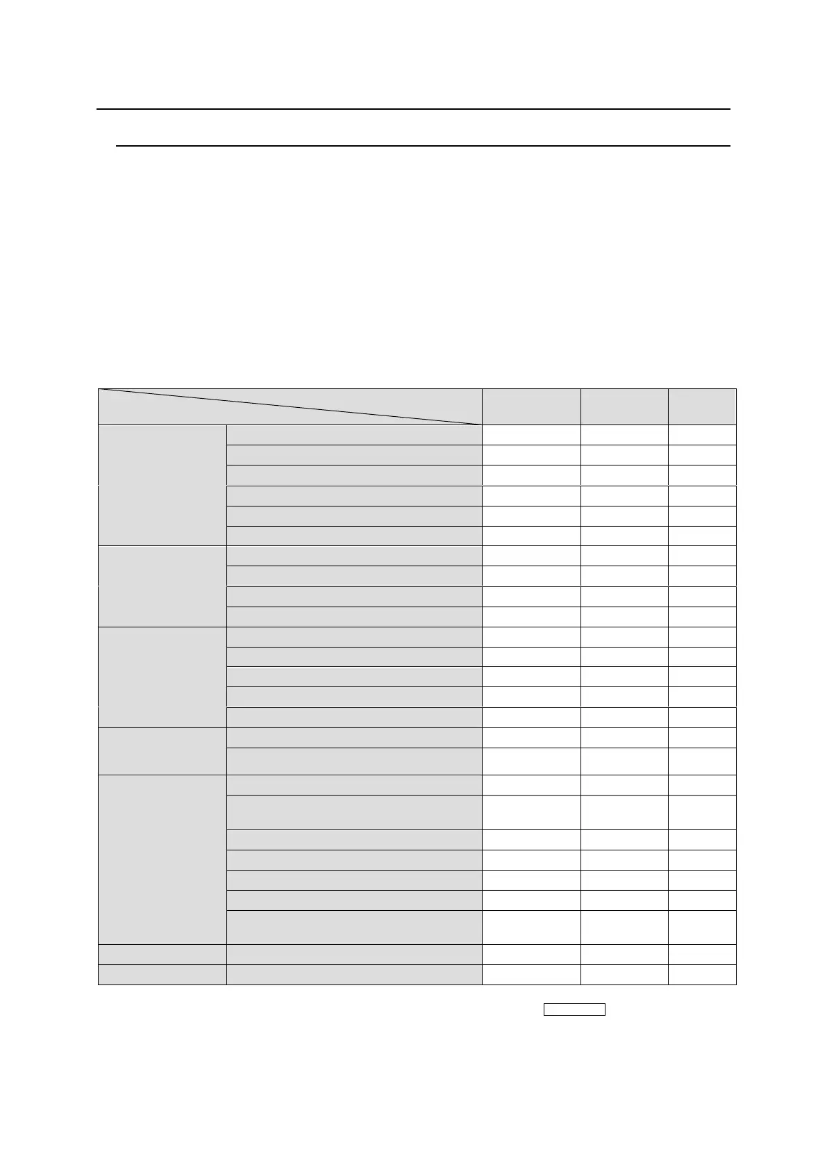 The below table shows the functions that can be controlled using the remote control panel (RU)