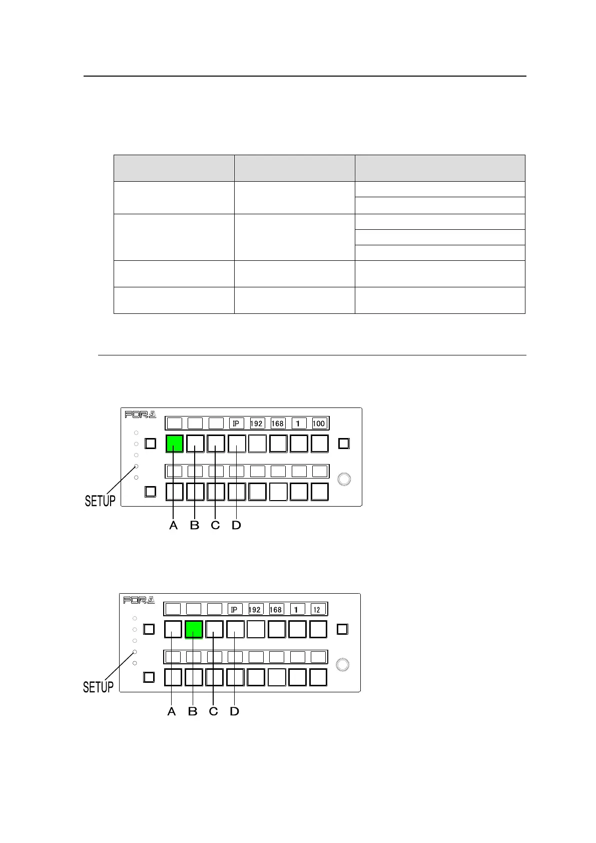 Press Button B in Setup Menu mode. The IP address, subnet mask and default gateway are