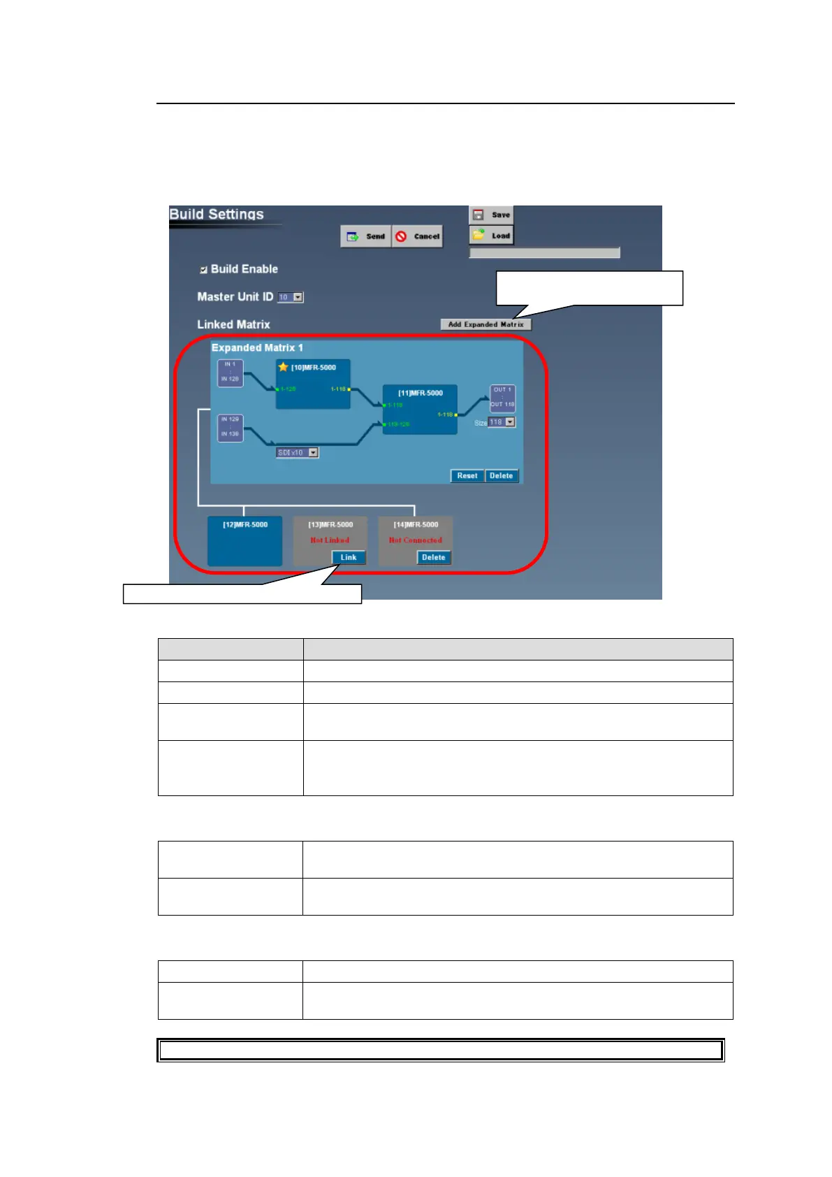 The Build Settings page allows you to set up Main Unit links. (Not supported by MFR-1000.)