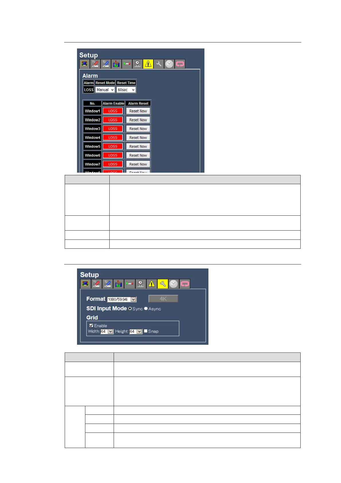 None: No alarm reset (Alarms are cleared when video is recovered.)