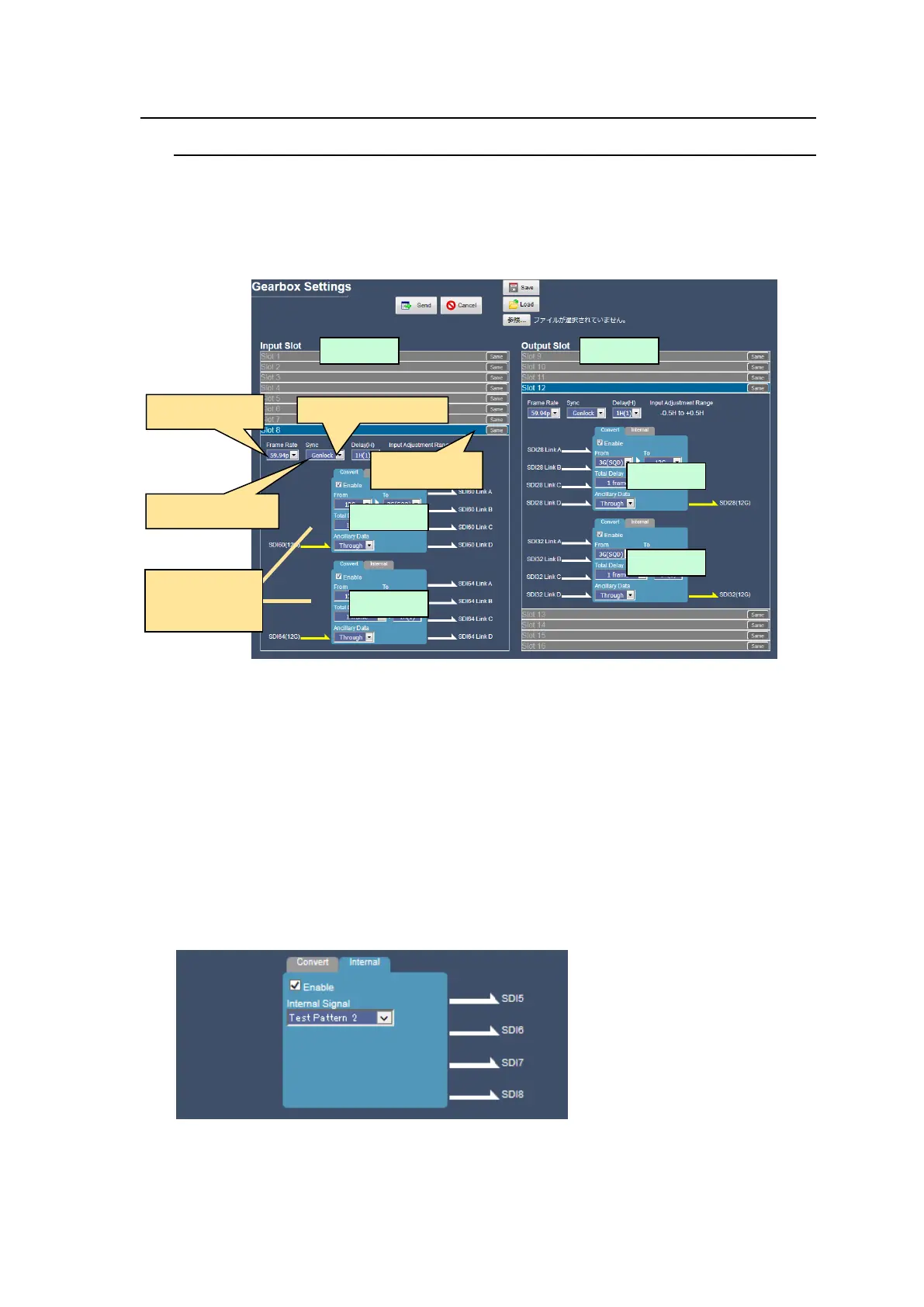 outputs from A (on MFR-5000) or D (on MFR-3000/8000) port and 3G-SDI Test Patterns are