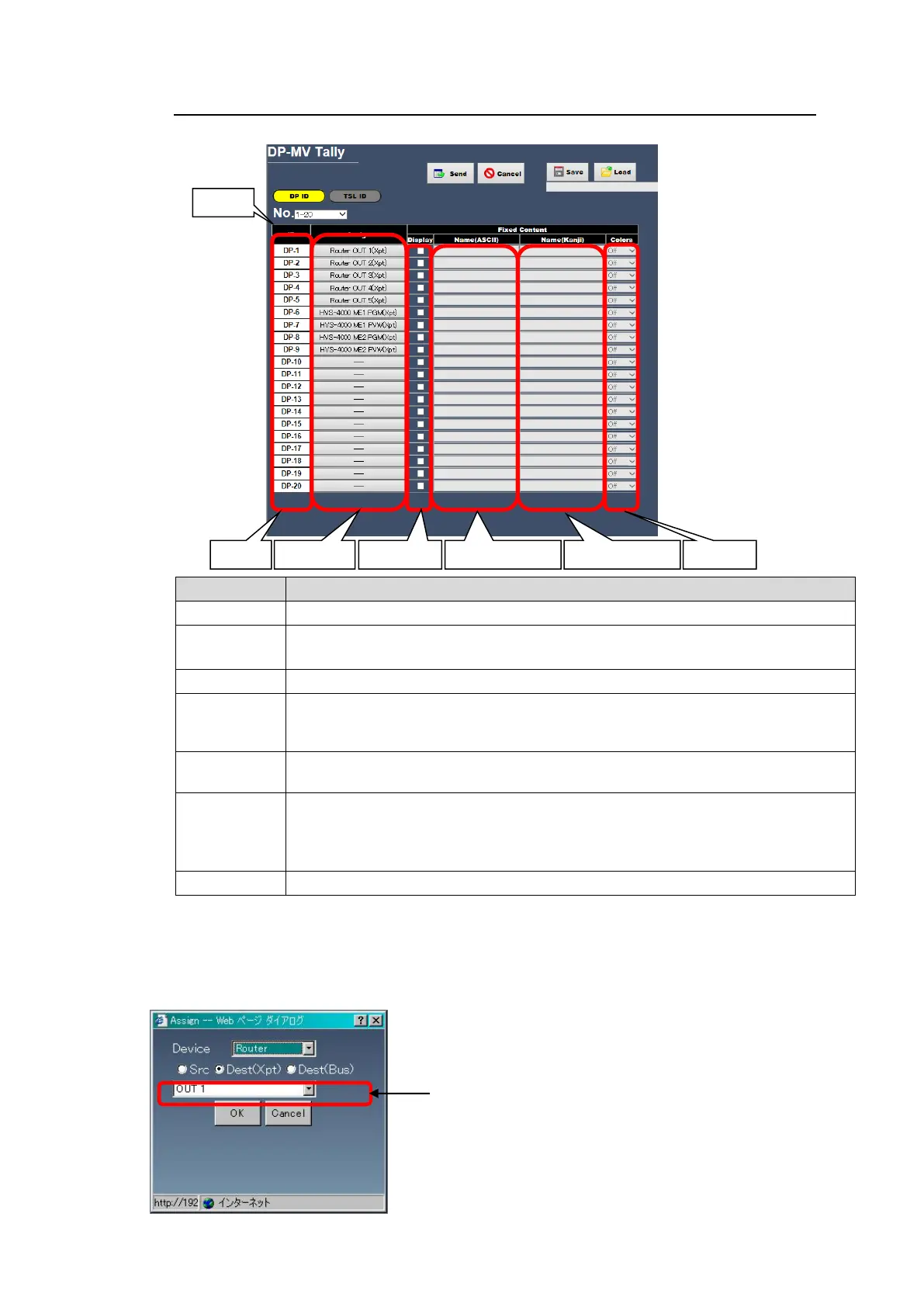 The DP-MV Tally page allows you to assign a channel for each display ID.