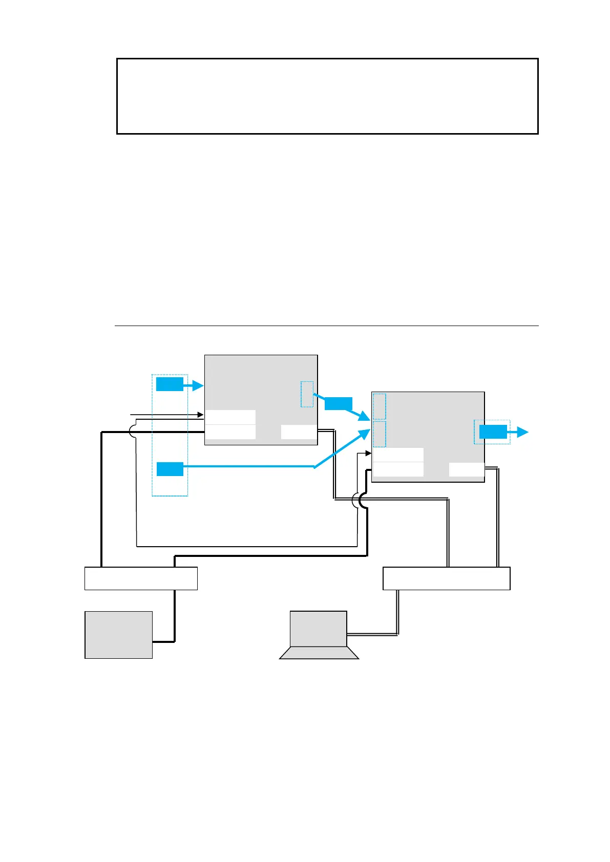 The system example below connects two MFR-3100EX units to form a 96 x 32 virtual matrix.