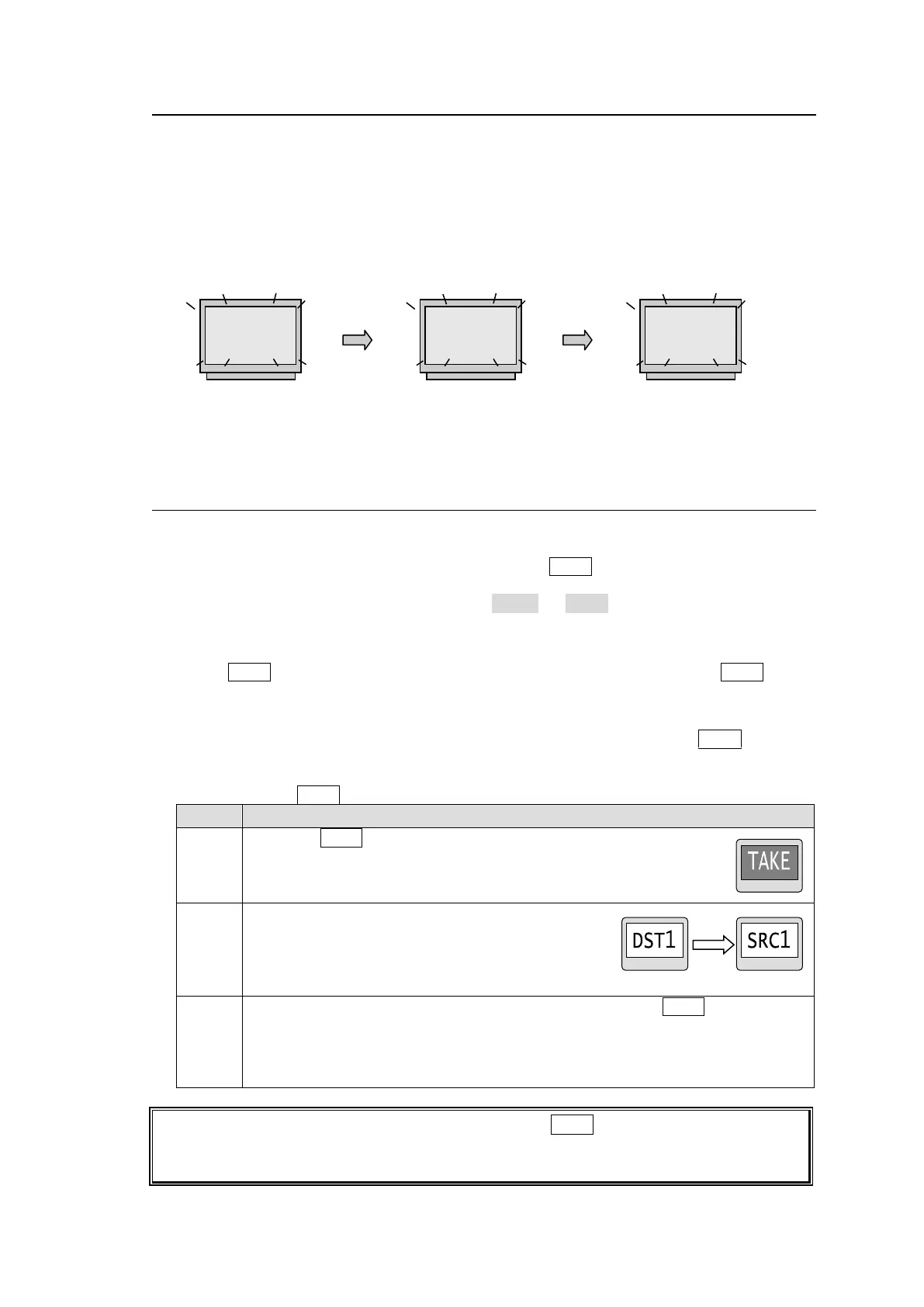 The Take function enables crosspoint switching by the TAKE button.
