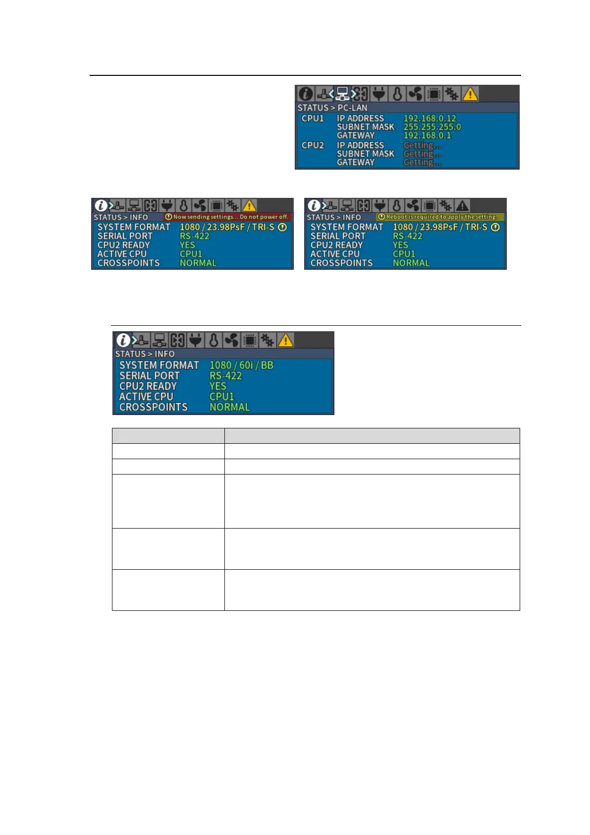 When settings are changed in each menu, the following messages are displayed. (Example below