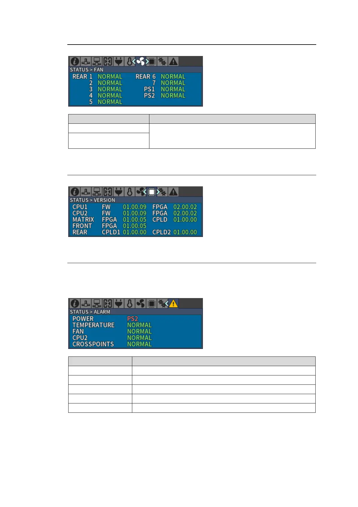 Displays FW (Firmware), FPGA and CPLD version for each card.