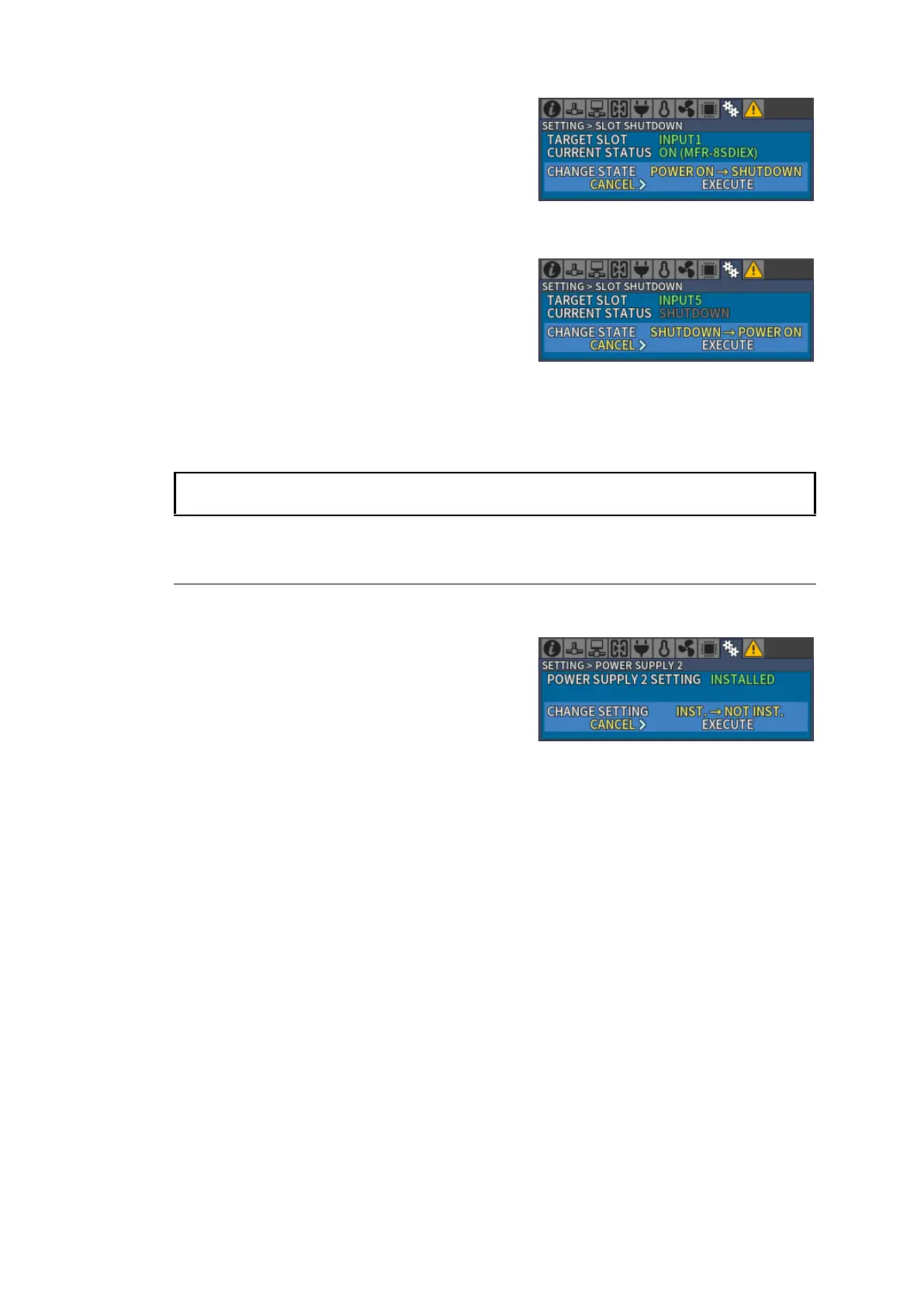 To change Power Supply 2 installation status, turn CONTROL, select EXECUTE in the