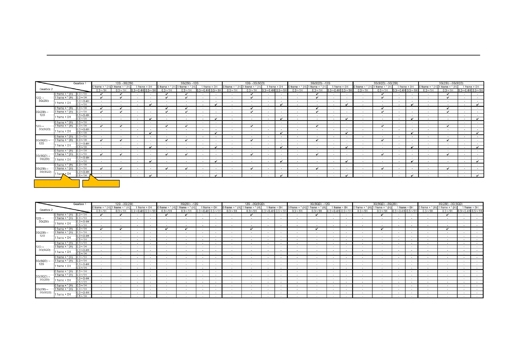 - In case of Input 9-16 /Output 9-16, read the table by swapping Gearbox 1 and Gearbox 2.