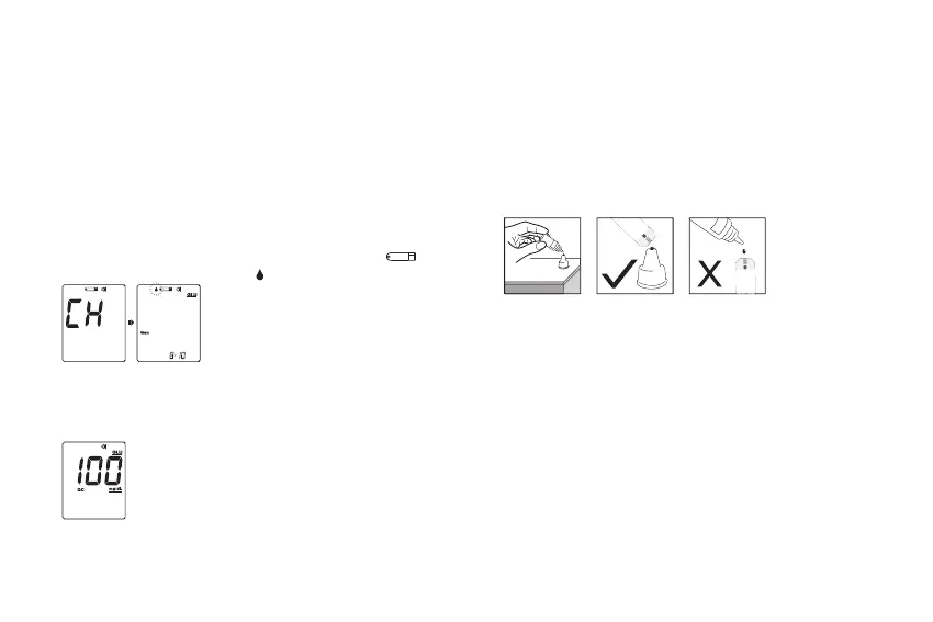 Attendez que l’appareil ache la bandelette de test “ “ et