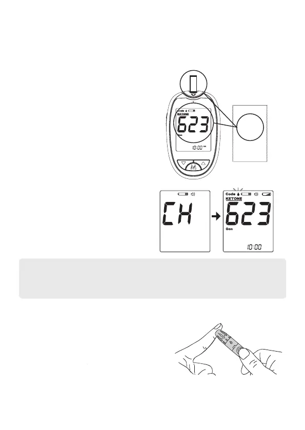 當您使用新的一批試片時,必須先執行密碼校正,其步驟與螢幕顯示順序如下: