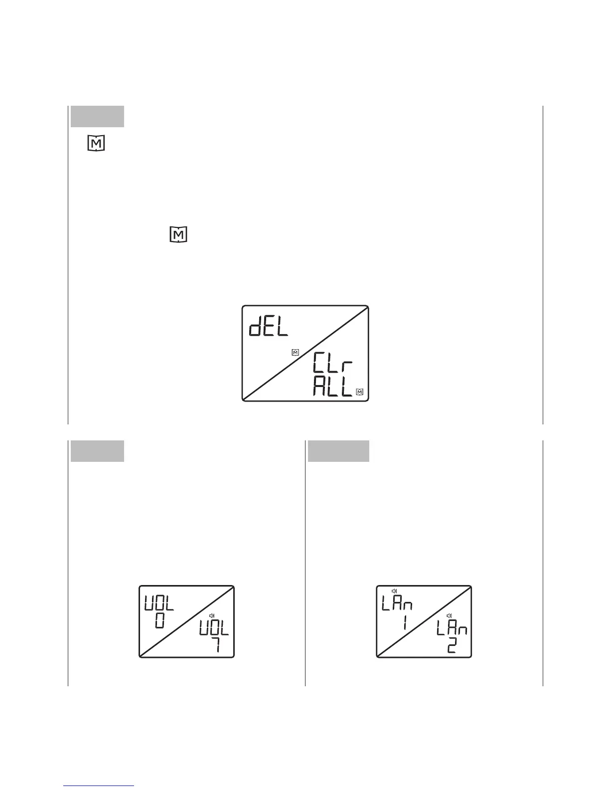 que “dEL” y “ ” parpadeen. Presione el botón M otra vez