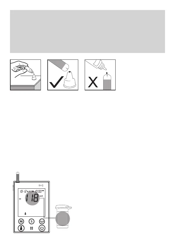 control, no aplique la gota directamente en la tira reactiva sino use el